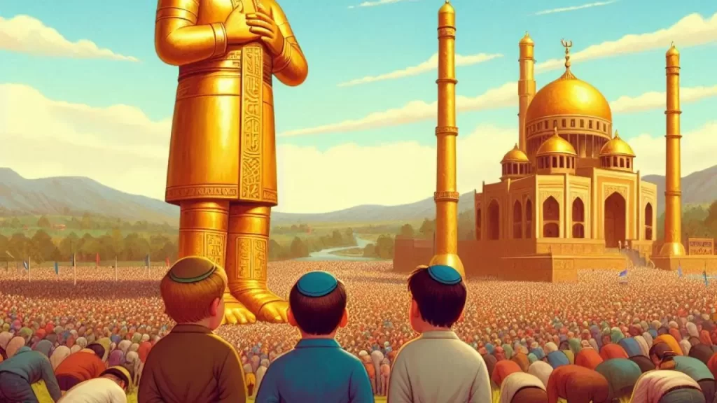 O rei Nabucodonosor, poderoso e imponente, construiu uma estátua gigantesca, toda de ouro, e ordenou que todos os povos de seu vasto império se curvassem e a adorassem sempre que ouvissem o som de instrumentos musicais. Era uma lei do rei, e quem não obedecesse teria um destino terrível: seria lançado em uma fornalha acesa, tão quente que o fogo poderia ser visto de longe.