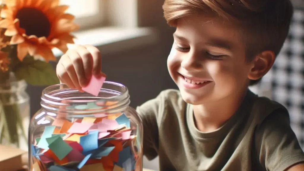 - Materiais: Um pote de vidro ou caixa decorada, pequenos pedaços de papel e canetas.